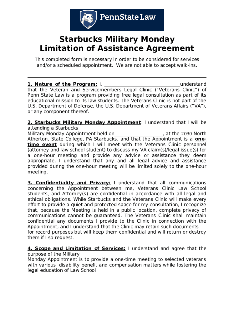 The Starbucks offering free coffee on Veterans Day for service ... is a fillable form in MS Word extension you can get filled-out and signed for specific purpose. In that case, it is provided to the actual addressee to provide some info of any kinds. The completion and signing is available in hard copy by hand or via an appropriate tool like PDFfiller. Such services help to complete any PDF or Word file online. It also allows you to edit its appearance according to the needs you have and put a valid electronic signature. Upon finishing, the user sends the Starbucks offering free coffee on Veterans Day for service ... to the recipient or several of them by email or fax. PDFfiller includes a feature and options that make your Word template printable. It has different options when printing out. It does no matter how you distribute a form after filling it out - in hard copy or electronically - it will always look neat and clear. In order not to create a new document from the beginning over and over, make the original document as a template. After that, you will have a rewritable sample.