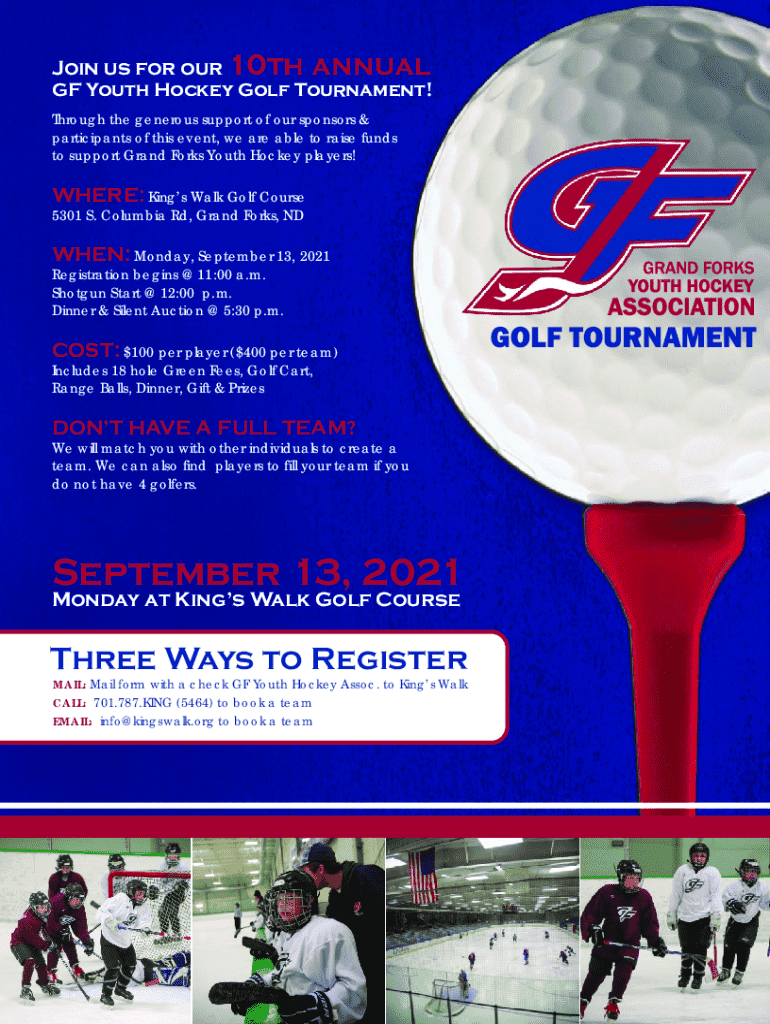 Join us for our 10thannualGF Youth Hockey Golf Tournament! Through the generous support of our sponsors & participants of this event, we are able to raise funds to support Grand Forks Youth Hockey