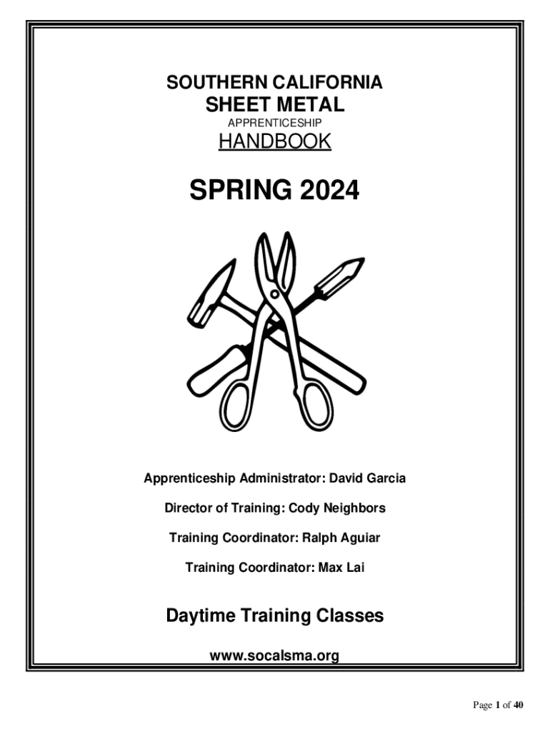 APPRENTICESHIPHANDBOOKSPRING 2024Apprenticeship Administrator: David Garcia