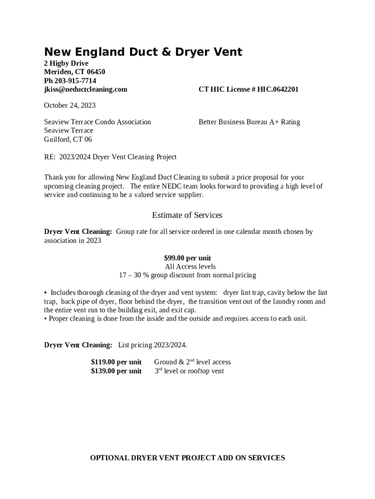 Template New England Duct & Dryer Vent Cleaning Meriden CT ... instructions