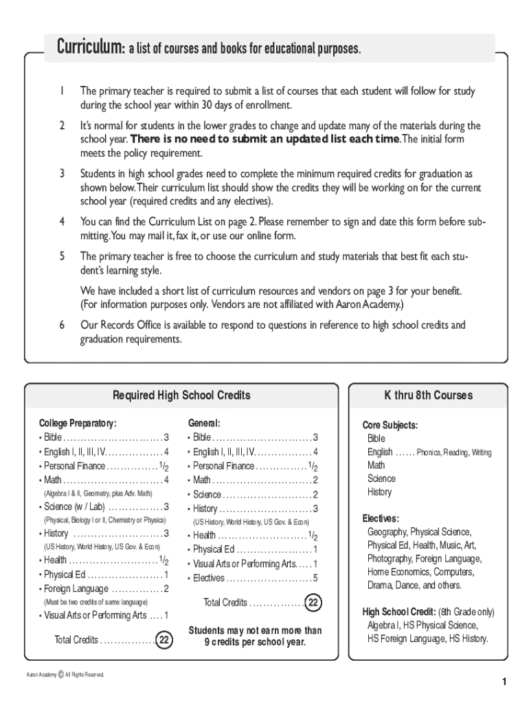 Curriculum: a list of courses and books for educational purposes. 1The primary teacher is required to submit a list of courses that each student will follow for study during the school year within