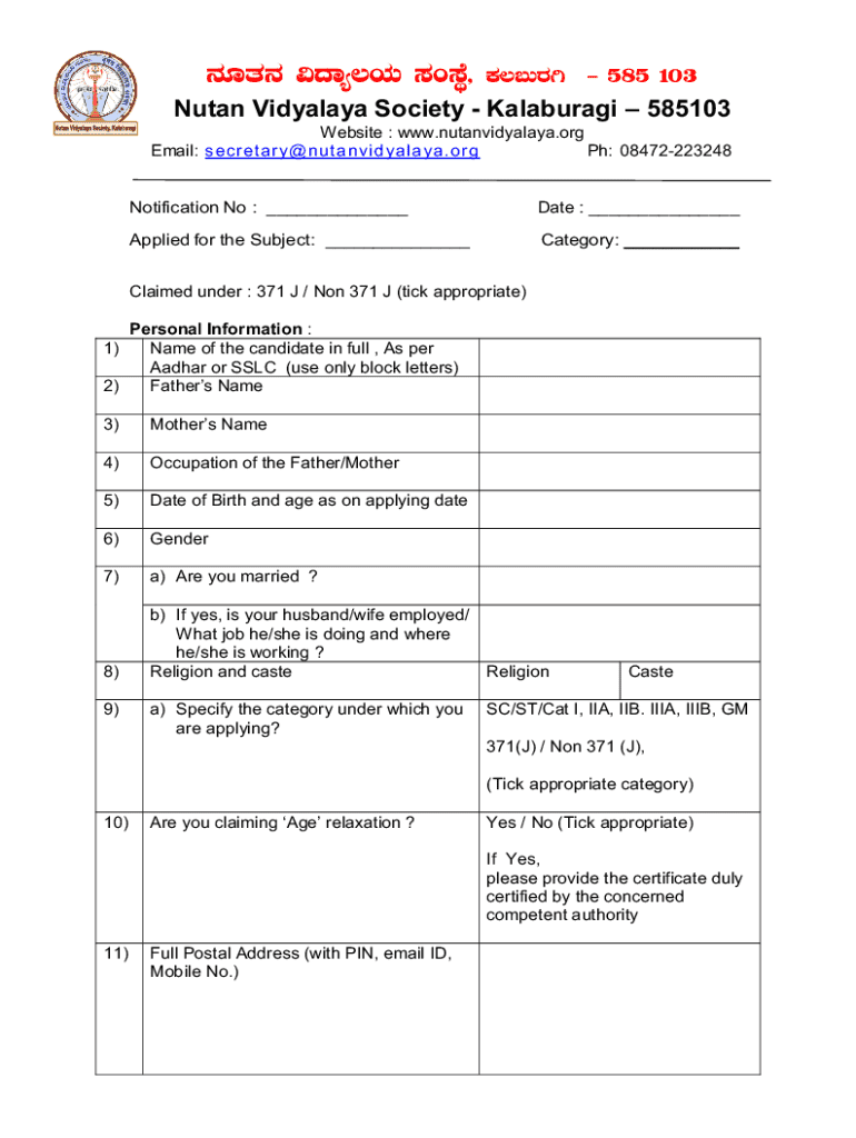 Get the free Nutan Vidyalaya Society College Of Education Kalaburagi