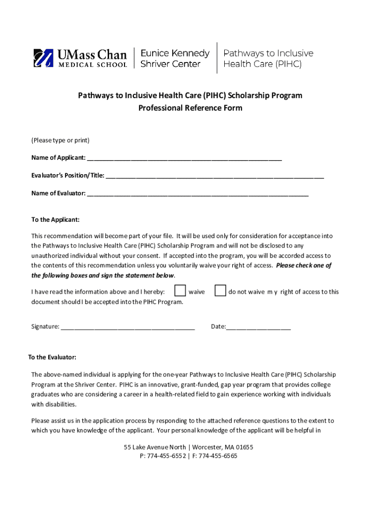 Get the free Pathways to Inclusive Health Care (PIHC) Scholarship Program ... - shriver umassmed