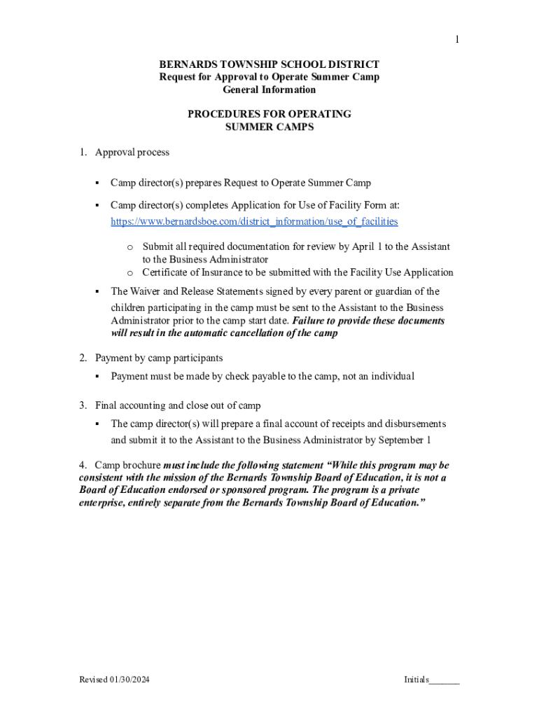 Request for Approval to Operate Summer Camp