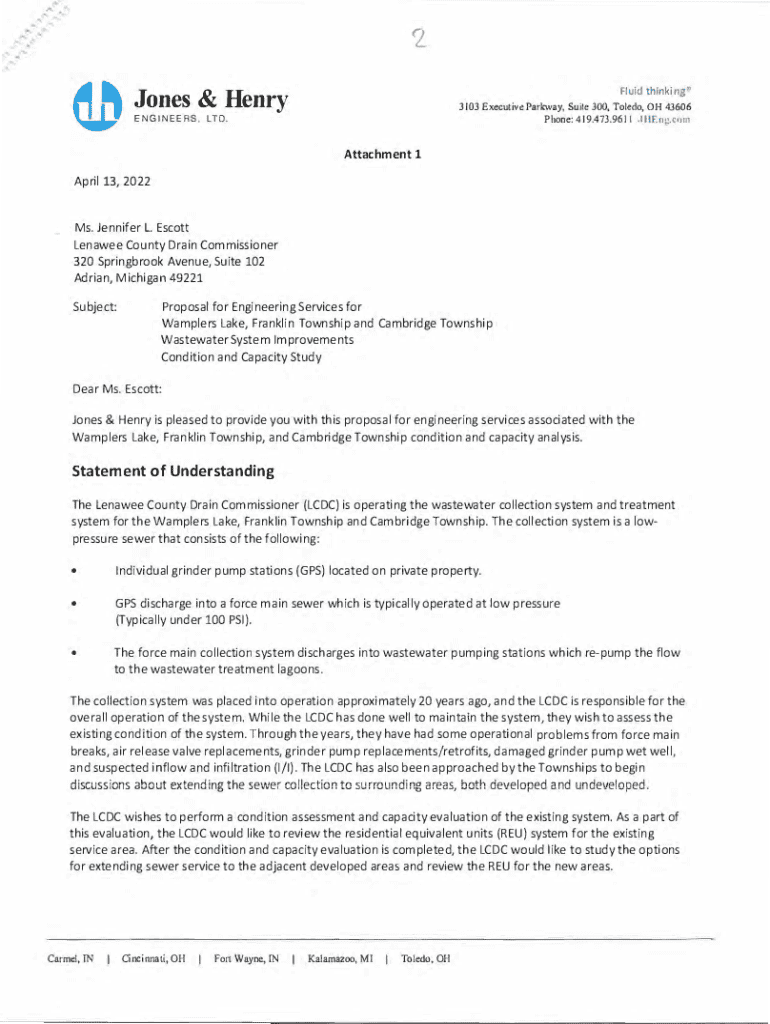 .,._2 Jones & HenryFluid thinking3103 Executive Parl..way, Suite 300, Toledo, OH 43606 Phone: 419.473.9611 ,IHfnl,!,CUlllENGINEERS, LTD.Attachment 1 April 13, 2022 Ms. Jennifer L. Escott Lenawee County