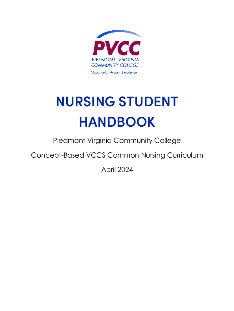 NURSING STUDENT HANDBOOK Piedmont Virginia Community College ConceptBased VCCS Common Nursing Curriculum April 2024PIEDMONT VIRGINIA COMMUNITY COLLEGE NURSING PROGRAM Dear Nursing Student, Welcome
