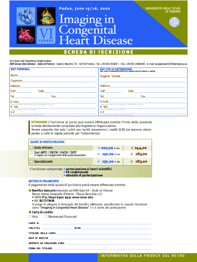 SCHEDA DI ISCRIZIONE Da inviare alla Segreteria Organizzativa: AIM Group International Sede di Firenze Viale G. Mazzini, 70 50132 Firenze Tel. +39 055 23388.1 Fax +39 055 2480246 email: ecopadova2022@aimgroup.eu