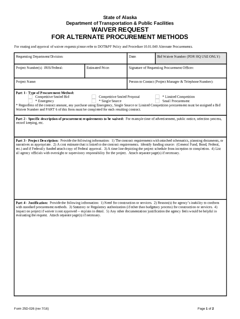What is Non-Office Leasing Waiver - dot alaska Form?