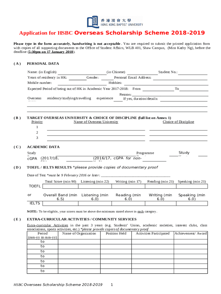 Instructions for the form Scholarship TipsStudy Abroad - HSBC International Services