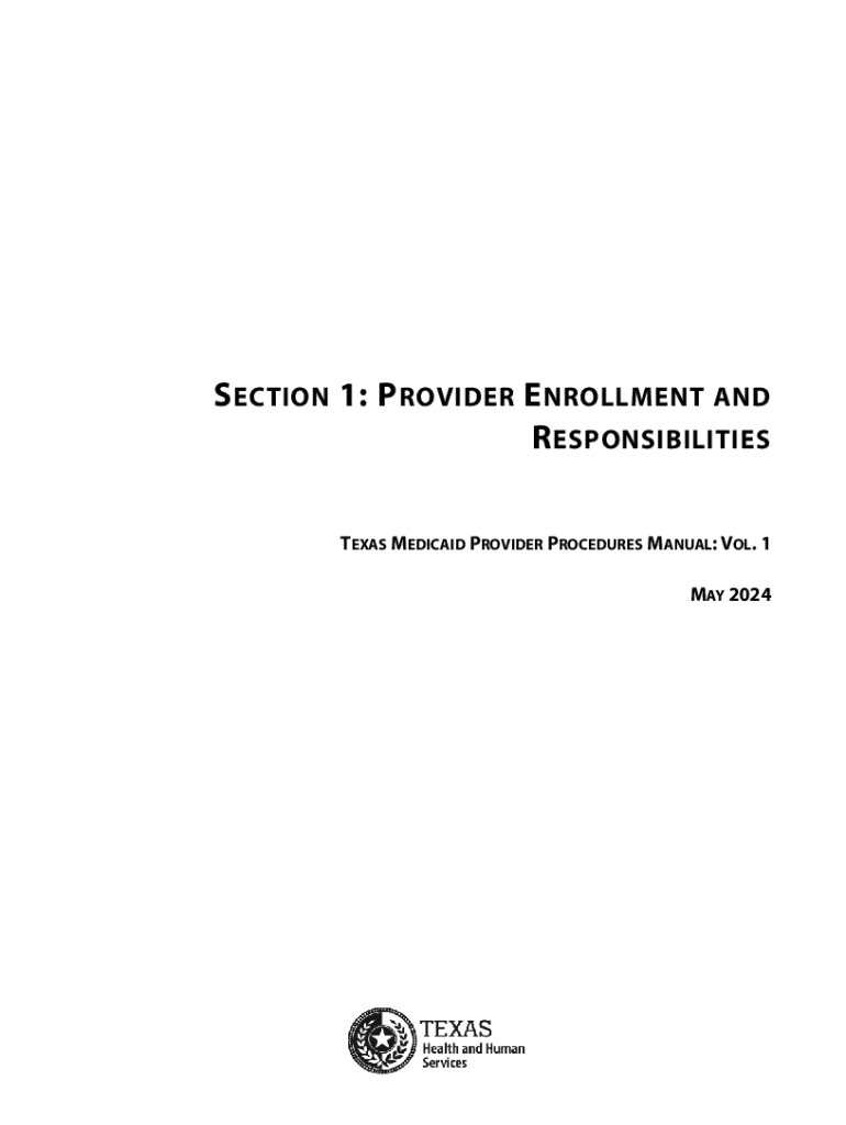MAY 2024TEXAS MEDICAID PROVIDER PROCEDURES MANUAL: VOL. 1MAY 2024SECTION 1: PROVIDER ENROLLMENT