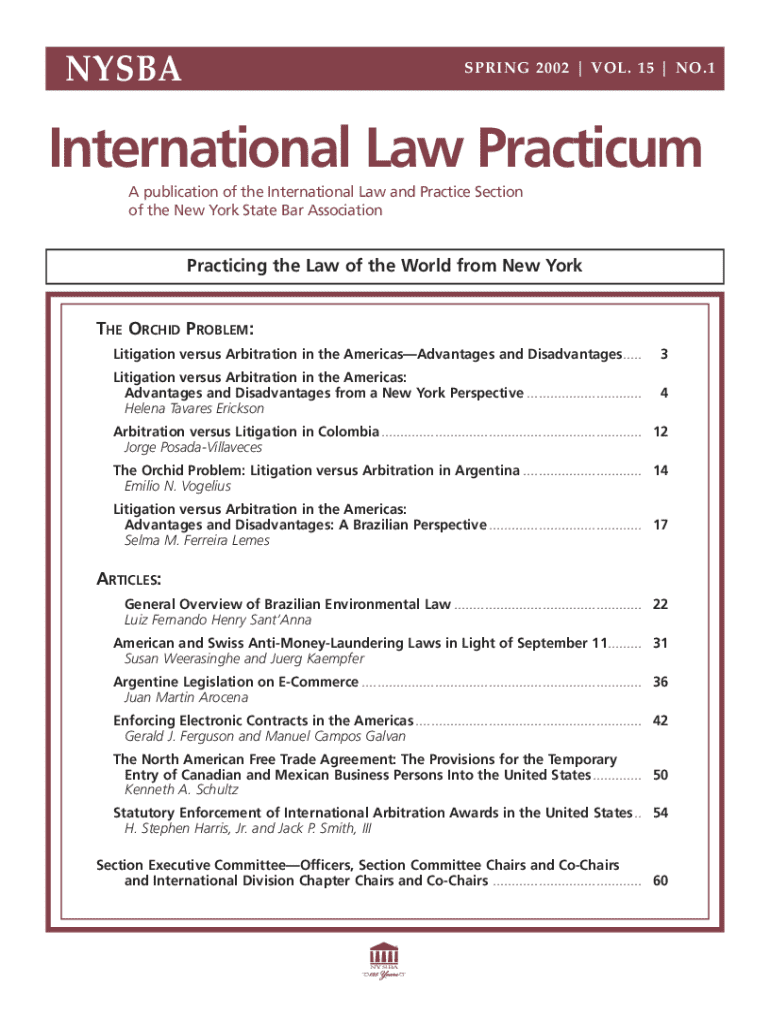 NYSBASPRING 2002 | VOL. 15 | NO.1International Law Practicum A publication of the International Law and Practice Section of the New York State Bar AssociationPracticing the Law of the World from New