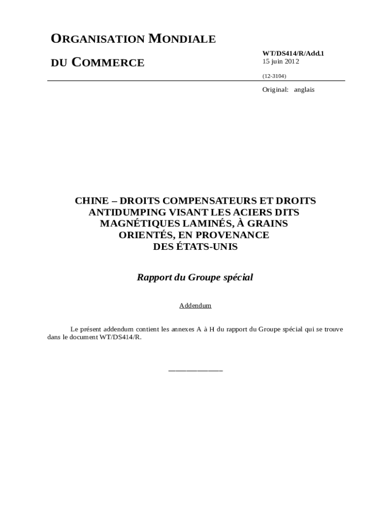 The ChinaAutos (US), Panel Report - Action by the Dispute ... is a document you can get completed and signed for certain reasons. Then, it is provided to the relevant addressee in order to provide some details of certain kinds. The completion and signing is possible manually in hard copy or via a suitable solution e. g. PDFfiller. Such services help to submit any PDF or Word file online. It also lets you edit its appearance according to the needs you have and put legit e-signature. Once done, the user ought to send the ChinaAutos (US), Panel Report - Action by the Dispute ... to the recipient or several ones by email or fax. PDFfiller includes a feature and options that make your document of MS Word extension printable. It includes a number of settings for printing out. It does no matter how you will deliver a form - physically or by email - it will always look professional and firm. To not to create a new file from scratch all the time, make the original Word file as a template. Later, you will have a rewritable sample.