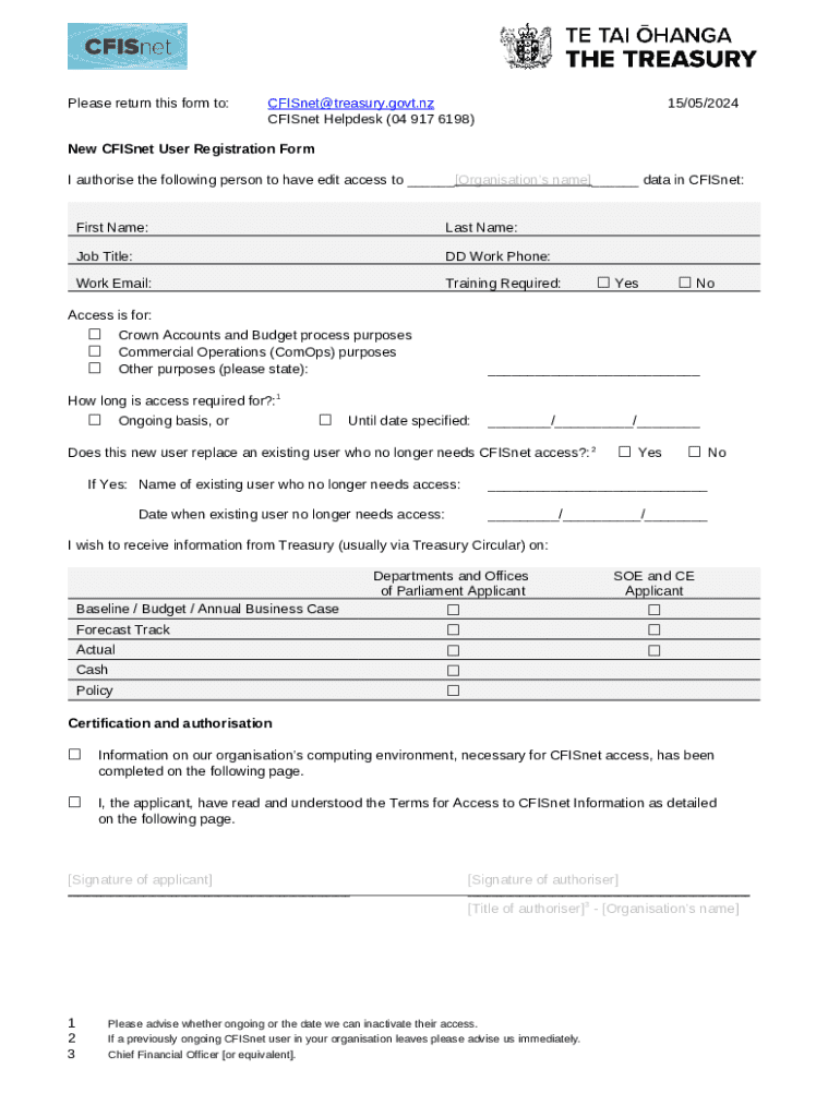 Frequently asked questions about the form New CFISnet User Registration - July 2023