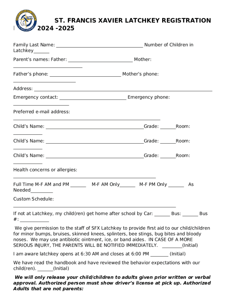 Instructions for the Latch KeyParents - Lawrence Avenue Elementary School form