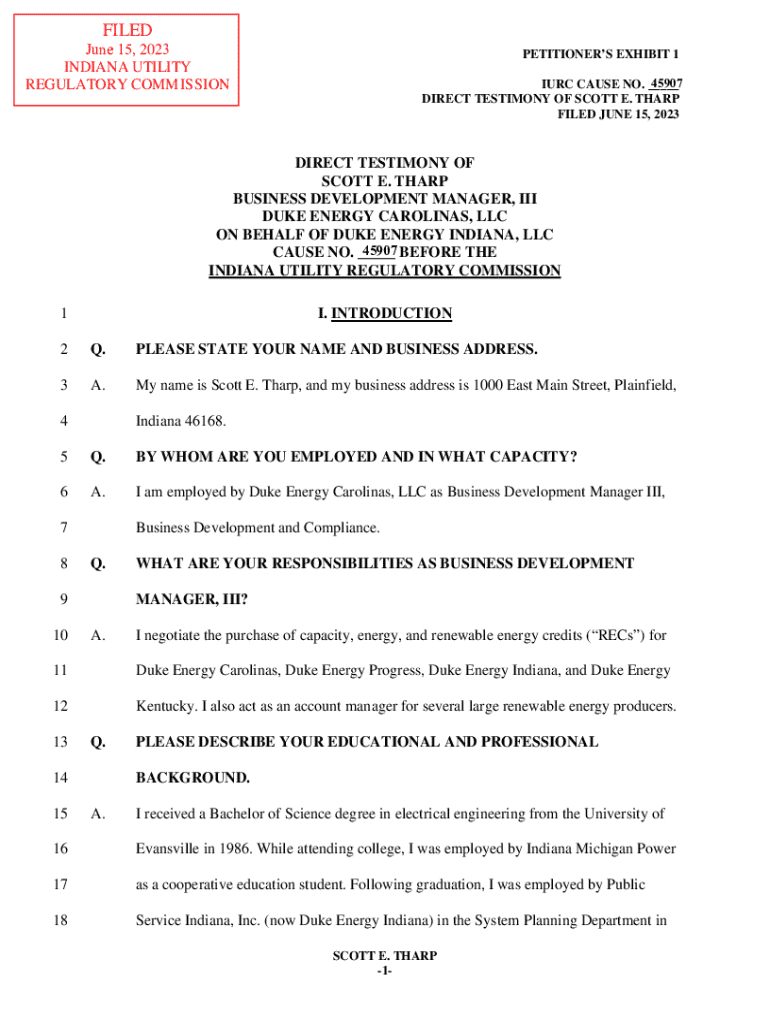 FILEDJune 15, 2023 INDIANA UTILITY REGULATORY COMMISSIONPETITIONERS EXHIBIT 1 45907 IURC CAUSE NO. ___ DIRECT TESTIMONY OF SCOTT E. THARP FILED JUNE 15, 2023DIRECT TESTIMONY OF SCOTT E. THARP BUSINESS