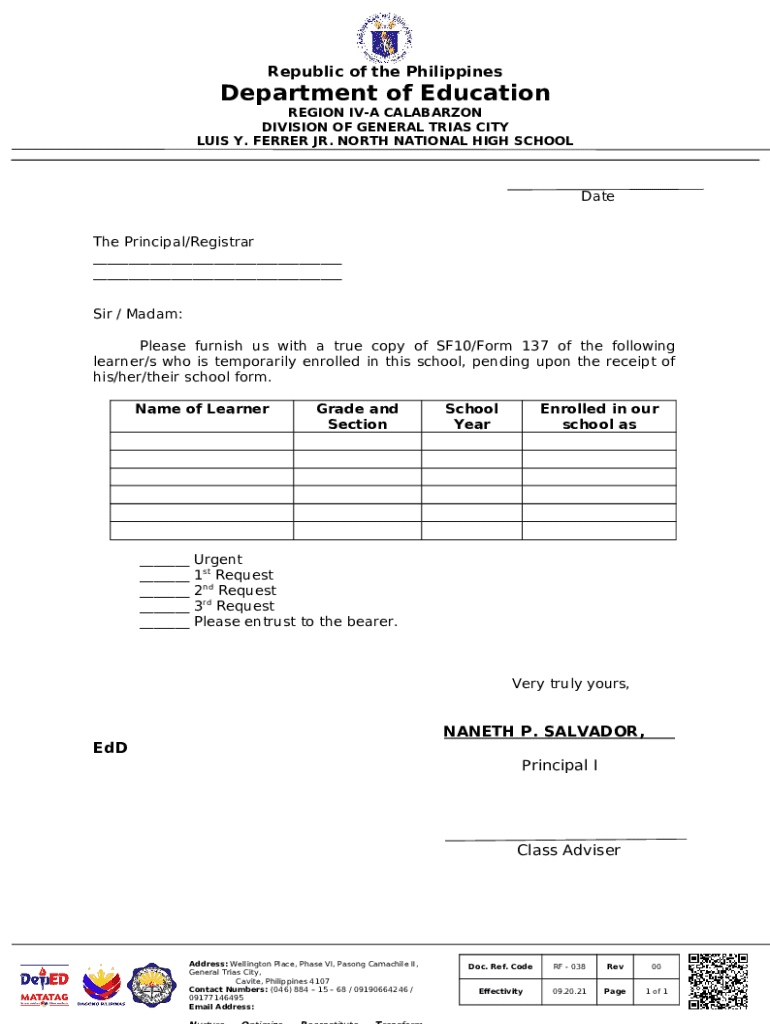 What is Request for 137 e.docx - . Department of Education... Form?