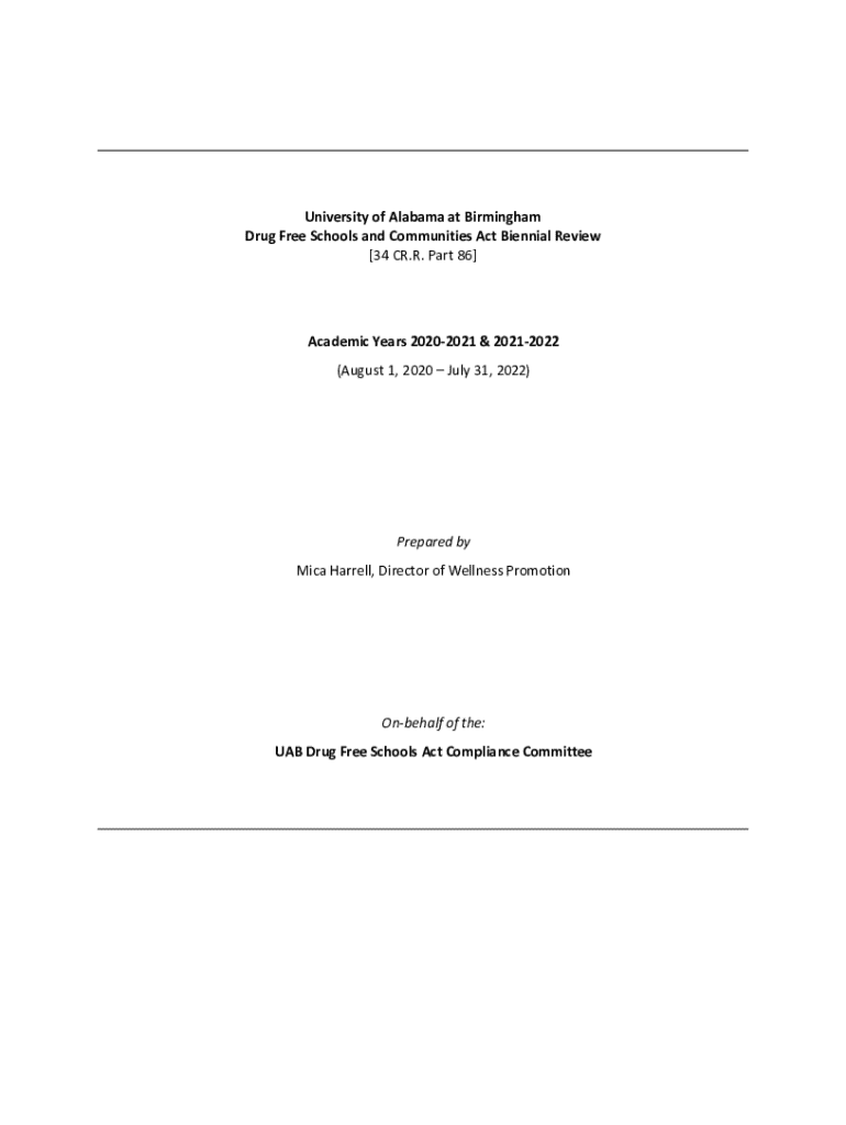 University of Alabama at Birmingham Drug Free Schools and Communities Act Biennial Review [34 CR.R. Part 86]Academic Years 20202021 & 20212022 (August 1, 2020 July 31, 2022)Prepared by Mica Harrell,
