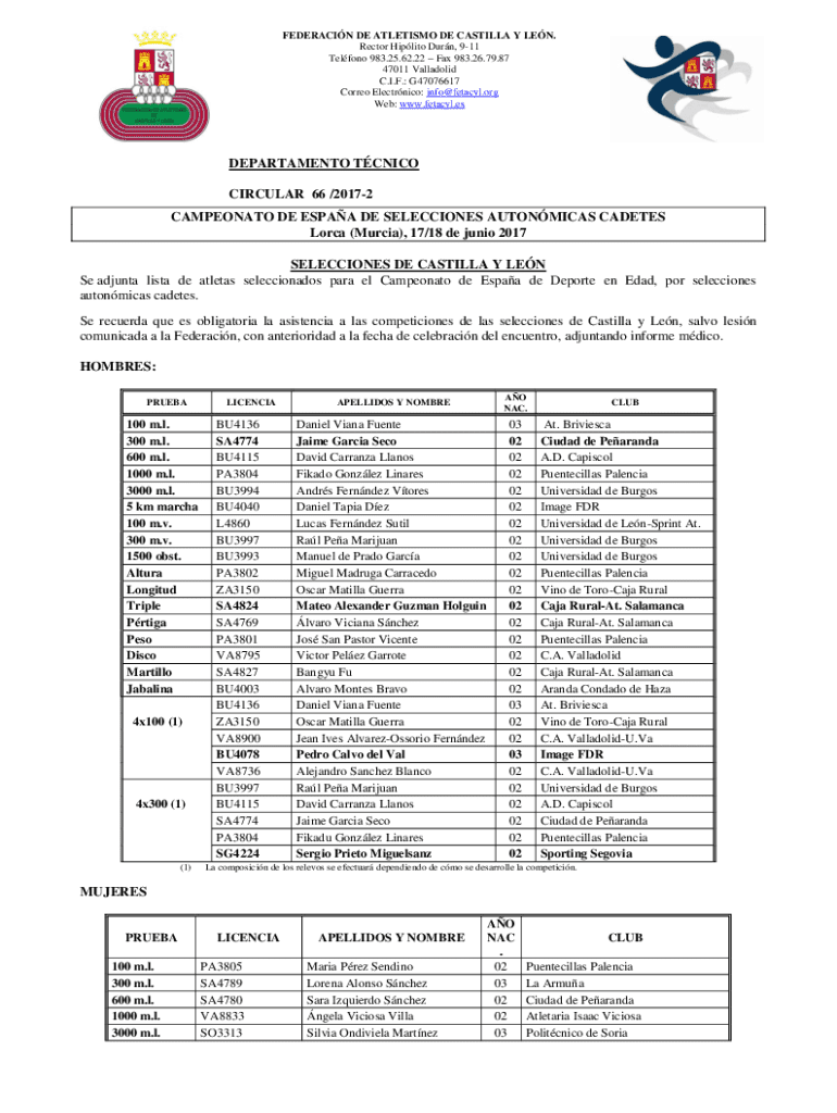 FEDERATION DE ATLÉTICO DE CASTILLA Y LEN.