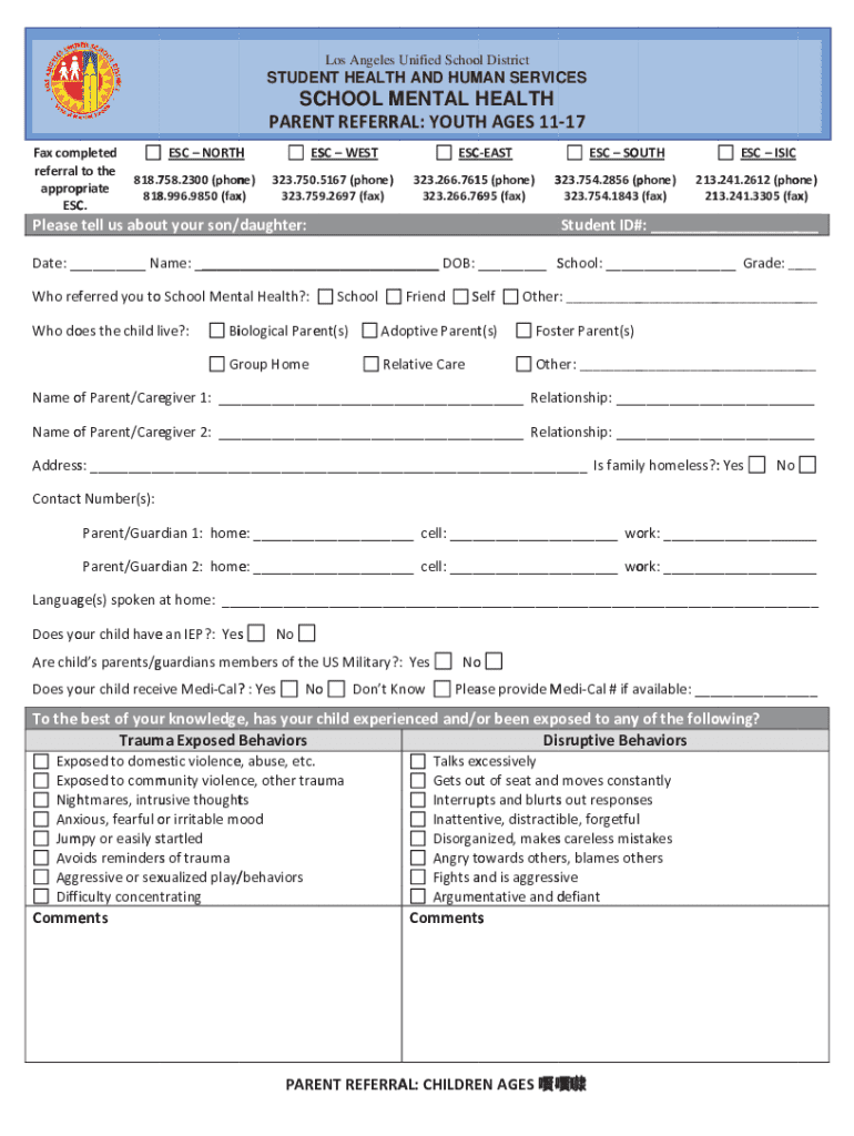 Get the free SC PAREN CHOOL M NT REFERR MENTAL H RAL: YOUTH ...
