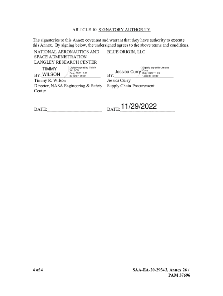 ANNEX NO. 26 BETWEEN THE NATIONAL AERONAUTICS AND SPACE ADMINISTRATION LANGLEY RESEARCH CENTER AND BLUE ORIGIN, LLC UNDER SPACE ACT UMBRELLA AGREEMENT SAAEA2029343 FOR TERATHERTZ SCANNING APPLICATION