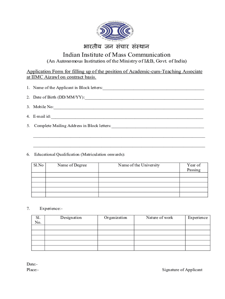 Fill out your application form for academic-cum-teaching online with pdfFiller!