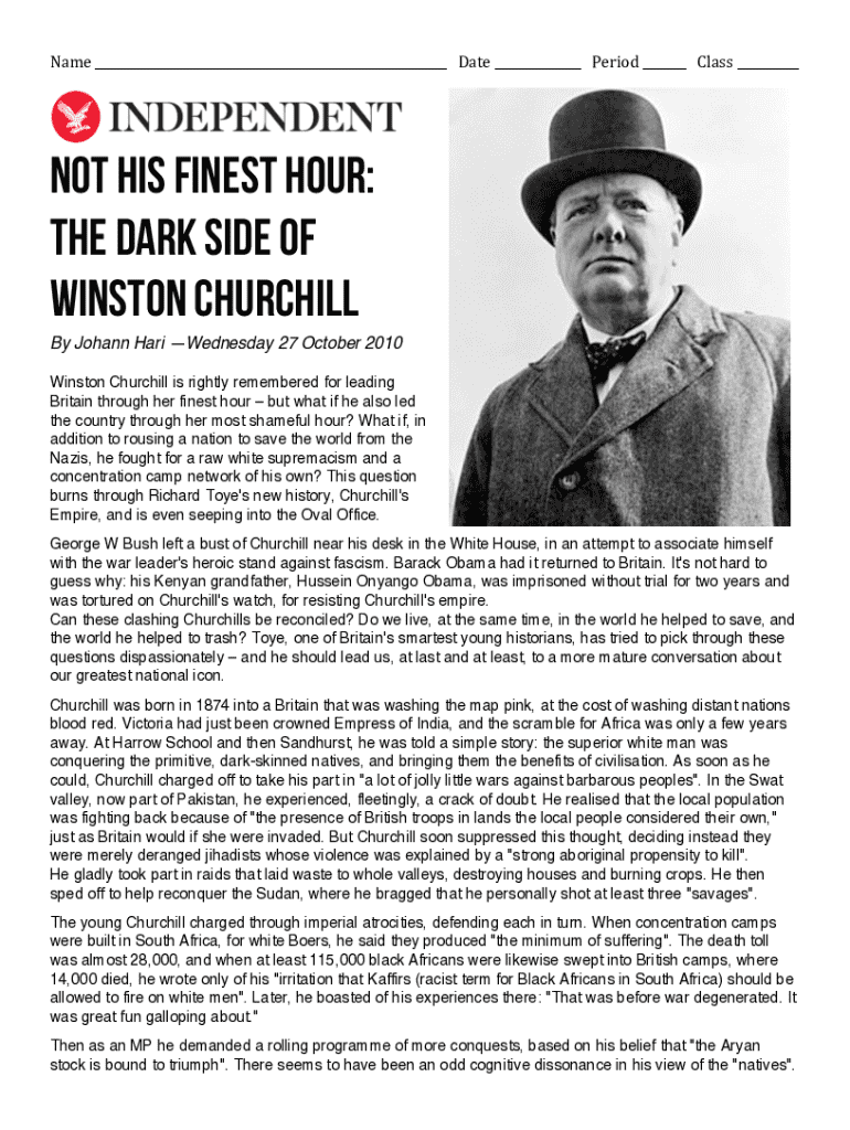Get the free Not his finest hour: The dark side of Winston Churchill