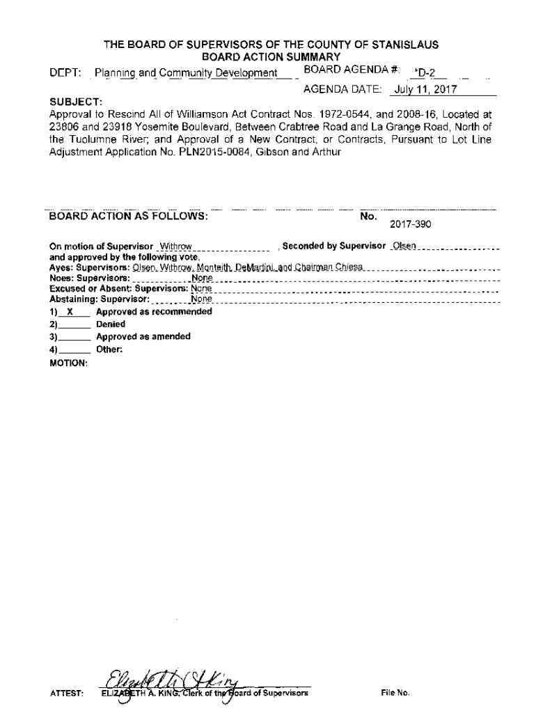 DEPT:THE BOARD OF SUPERVISORS OF THE COUNTY OF STANISLAUS BOARD ACTION SUMMARY BOARD AGENDA #: *D2 .. Plan11ing and Community Development AGENDA DATE:July 11,2017SUBJECT: Approval to Rescind Ali of