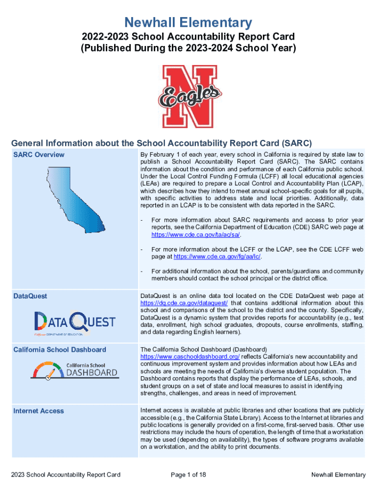 Newhall Elementary 20222023 School Accountability Report Card (Published During the 20232024 School Year)2023 School Accountability Report CardGeneral Information about the School Accountability Report