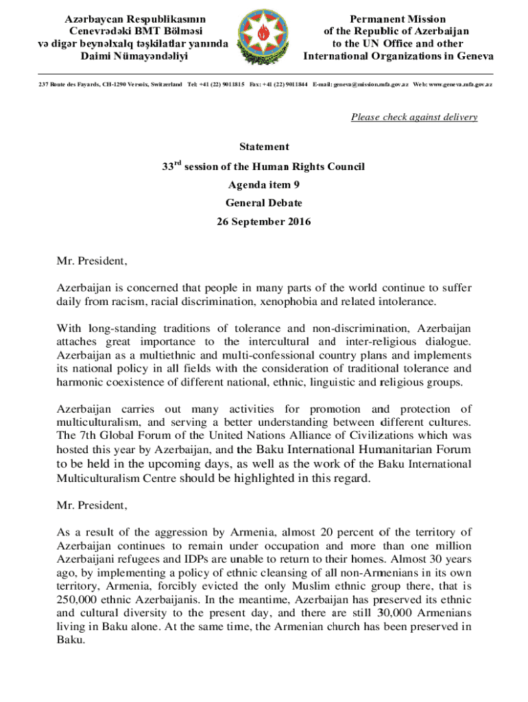 Get the free Statement by the Delegation of the Republic of Azerbaijan ... - geneva mfa gov