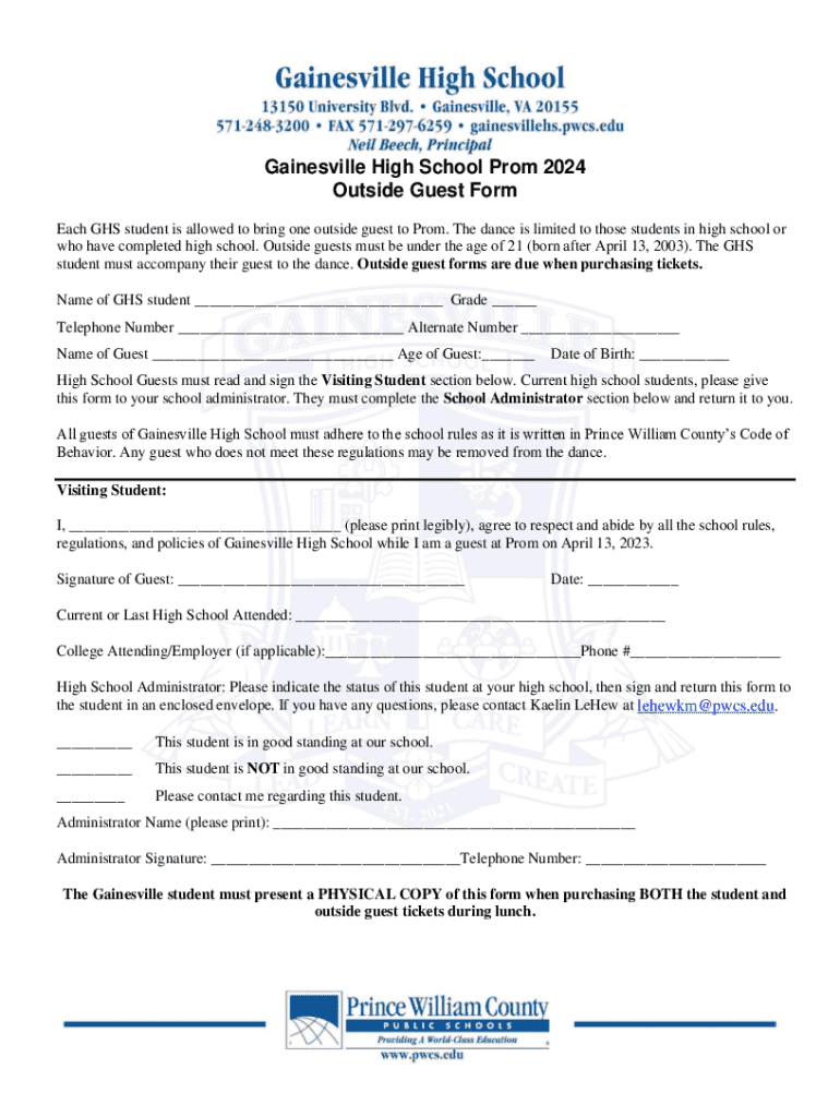 Get the free Gainesville High School Prom 2024 Outside Guest Form