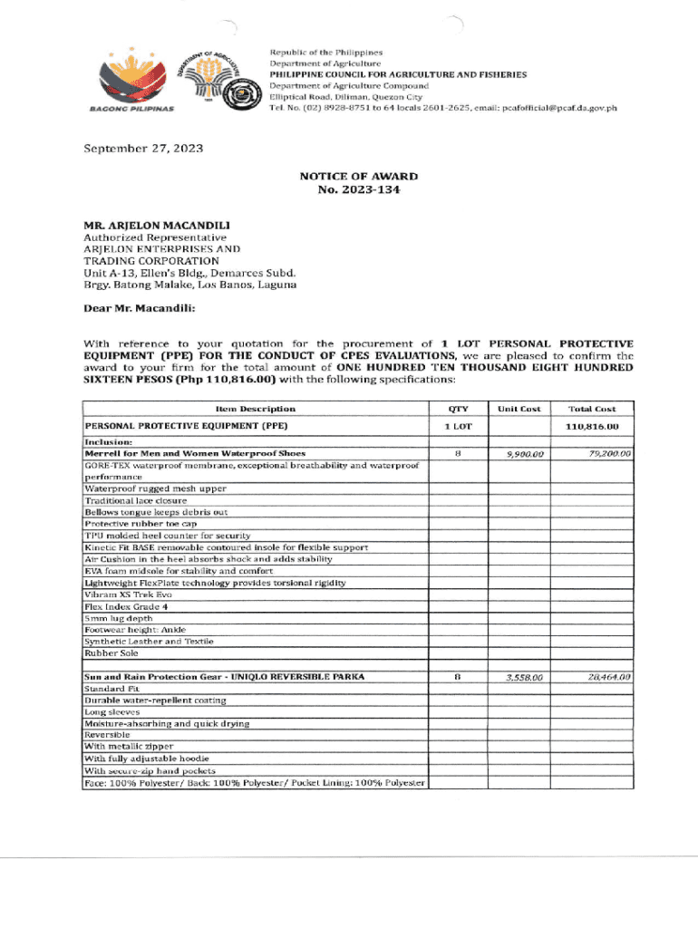 Get the free No. 2023-134 - Philippine Council for Agriculture and Fisheries -