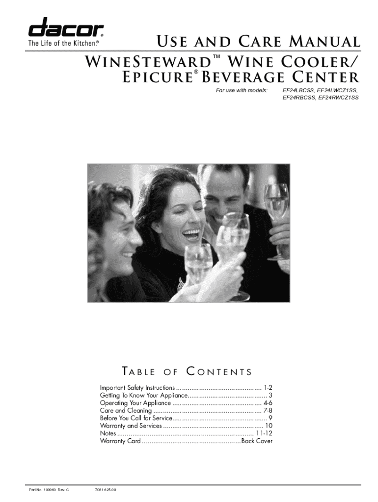 Use and C are Manual WineSteward Wine Cooler/ Epicure Beverage Center For use with models:Ta b l eofContentsImportant Safety Instructions.............................................. 12 Getting To
