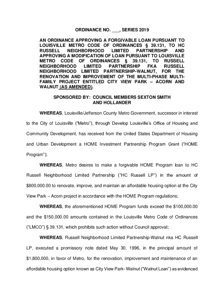 Get the free O-364-19 - O-364-19 PROPOSED CAM 103119 Loan Forgiveness to HC Russell LP for City V...