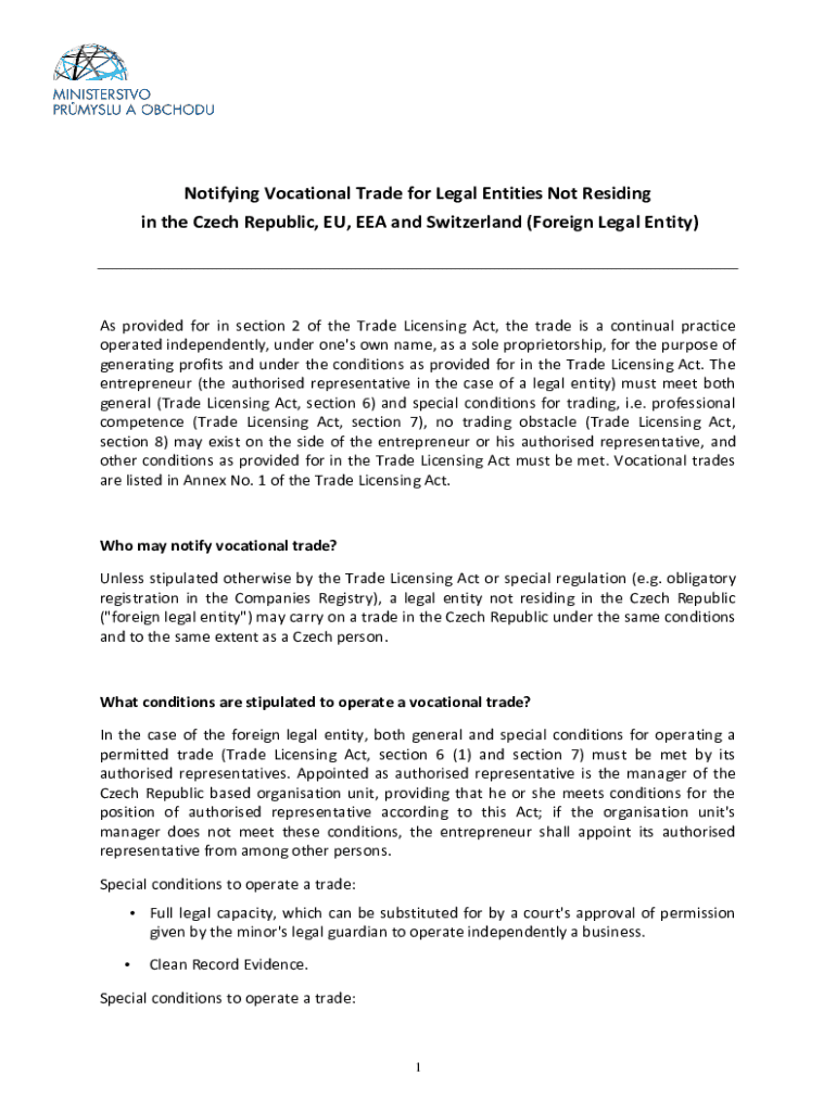 Get the free Notifying Vocational Trade for Legal Entities Residing in an ...
