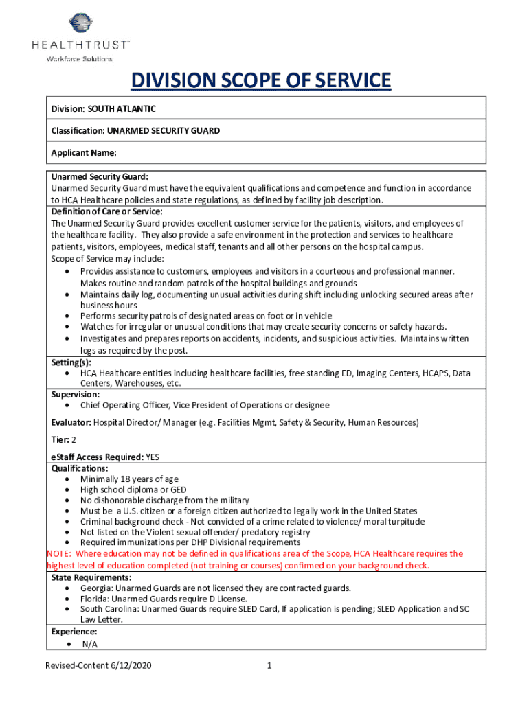 DIVISION SCOPE OF SERVICE