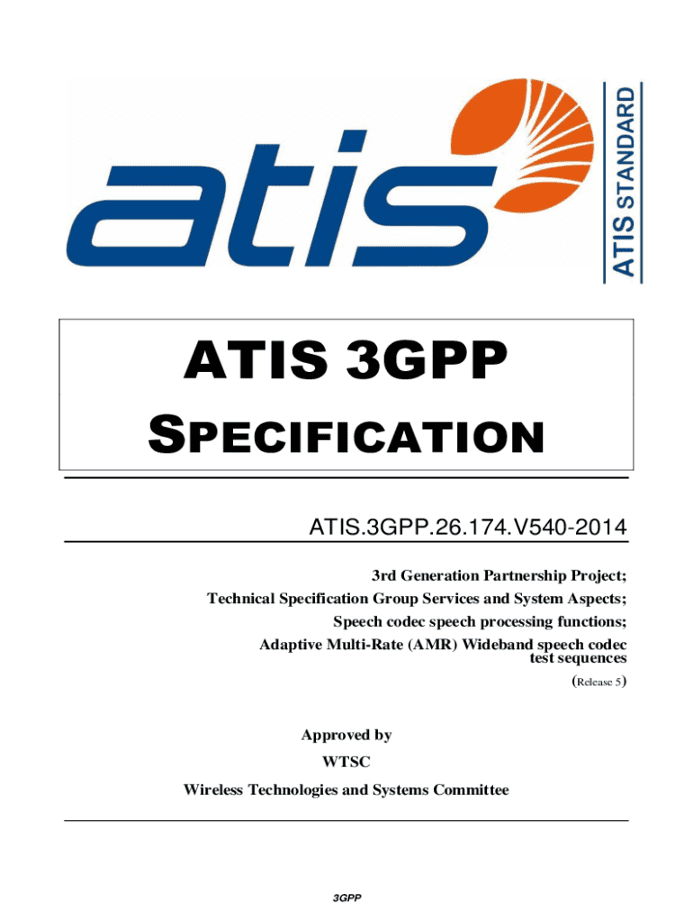 ATIS 3GPP SPECIFICATION ATIS.3GPP.26.174.V5402014 3rd Generation Partnership Project; Technical Specification Group Services and System Aspects; Speech codec speech processing functions; Adaptive