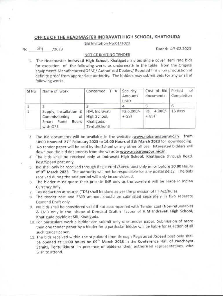 Name of the work: Supply, installation and commissioning of Smart Panel Board with OPS. Sl.