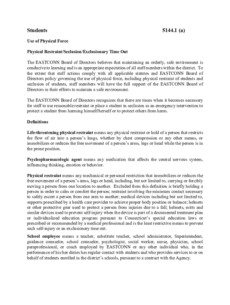 Get the free PHYSICAL RESTRAINT OF STUDENTS WITH DISABILITIES