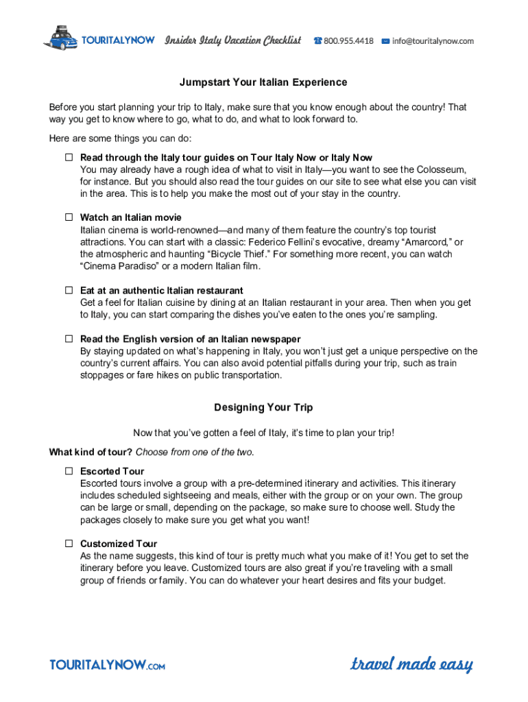 Jumpstart Your Italian Experience Before you start planning your trip to Italy, make sure that you know enough about the country! That way you get to know where to go, what to do, and what to look