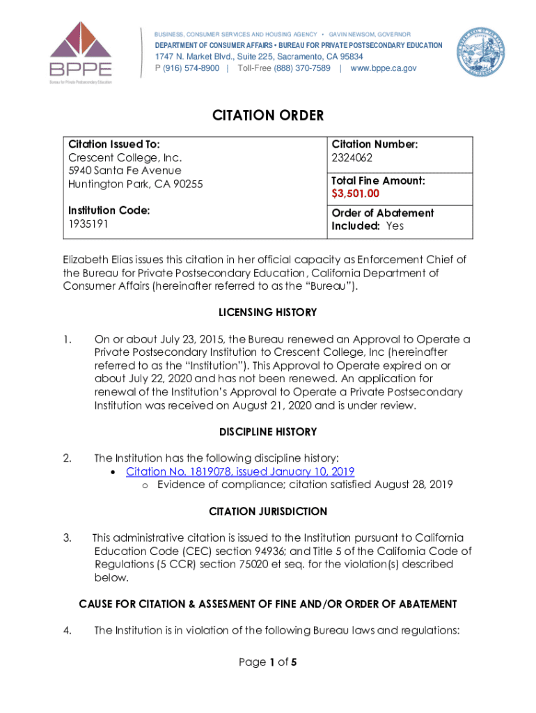 BUSINESS, CONSUMER SERVICES AND HOUSING AGENCY GAVIN NEWSOM, GOVERNORDEPARTMENT OF CONSUMER AFFAIRS BUREAU FOR PRIVATE POSTSECONDARY EDUCATION1747 N. Market Blvd., Suite 225, Sacramento, CA 95834