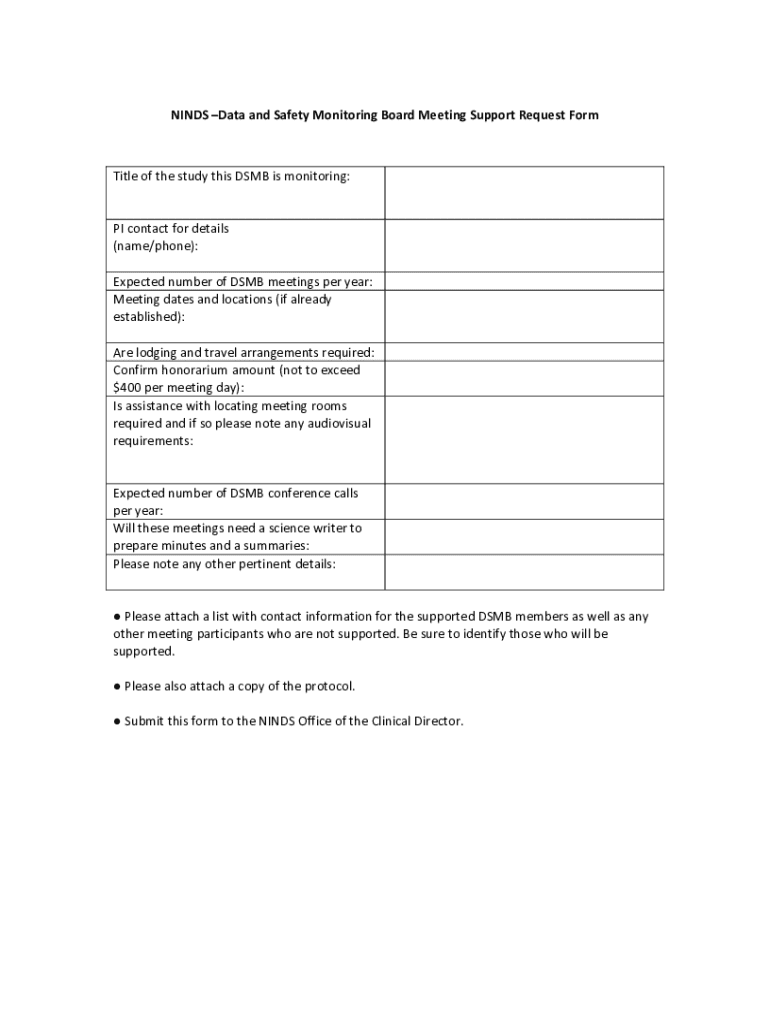 Get the free NINDS- Data and Safety Monitoring Board Meeting Support Request Form. NINDS- Data an...