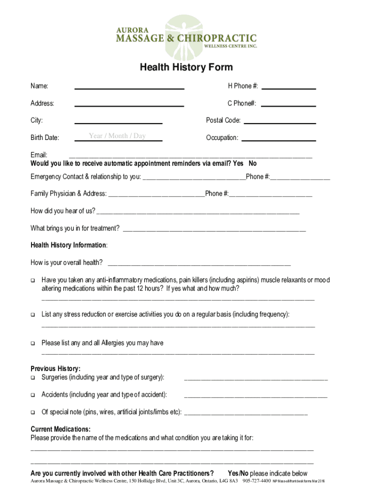 Get the free Health History Form - Aurora Massage and Chiropractic Wellness ...