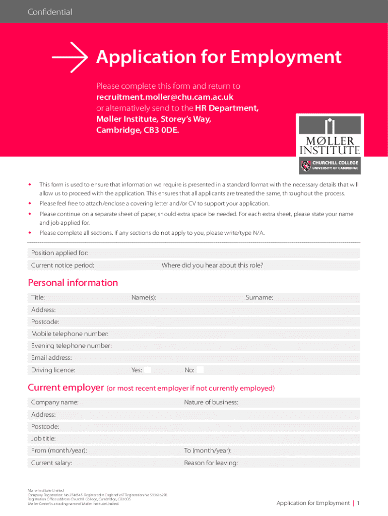 ConfidentialApplication for Employment