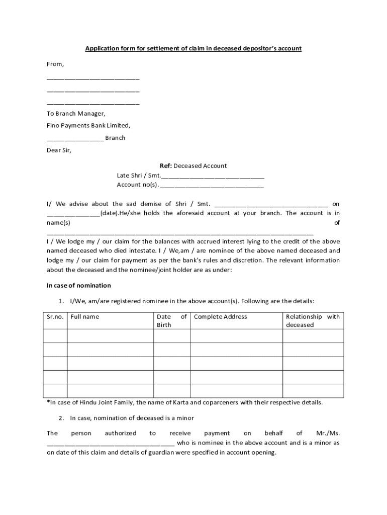 Get the free Application form for settlement of claim in deceased ...