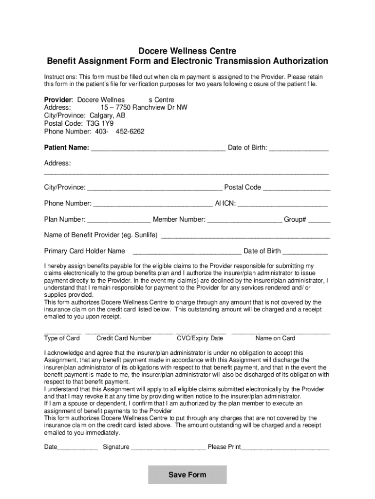 Get the free Docere Wellness Centre Benefit Assignment Form and ...