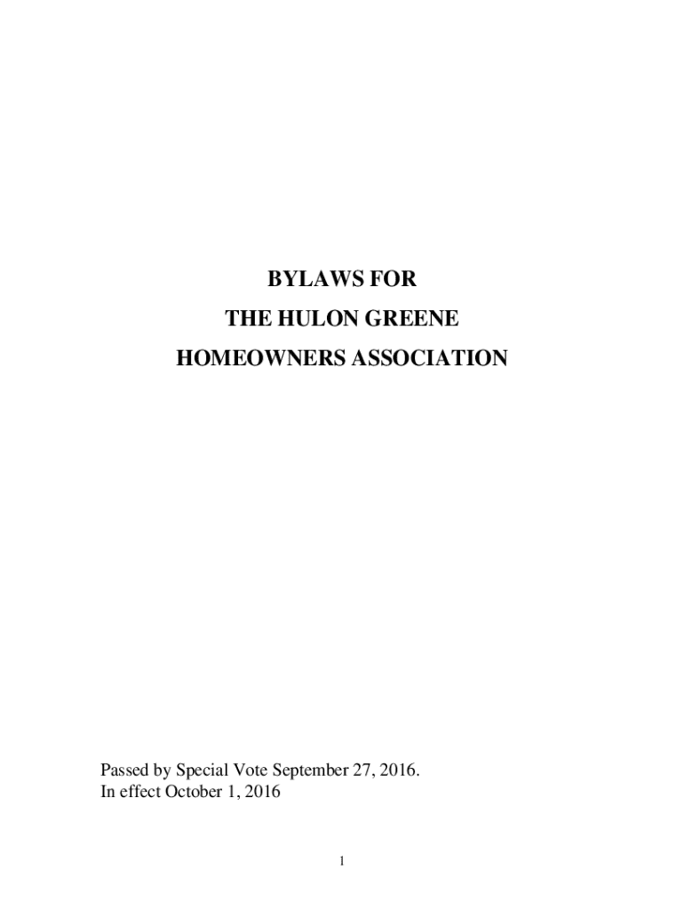 Get the free Bylaws of the Hulon Greene Home Owners Association