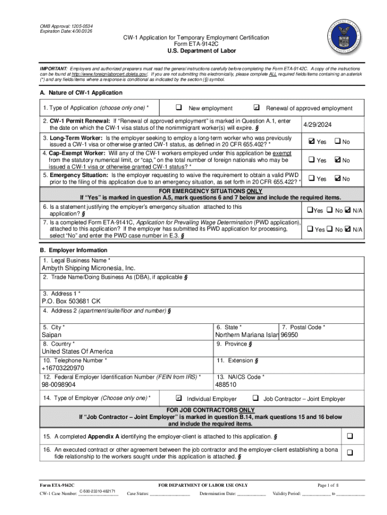 Expiration Date: 4/30/2026CW1 Application for Temporary Employment Certification