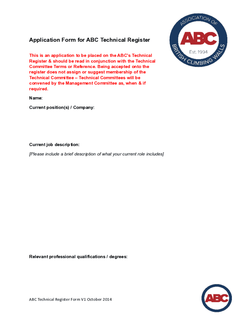 The application form for abc must include personal details, contact information, purpose of the application, and any relevant supporting documents.