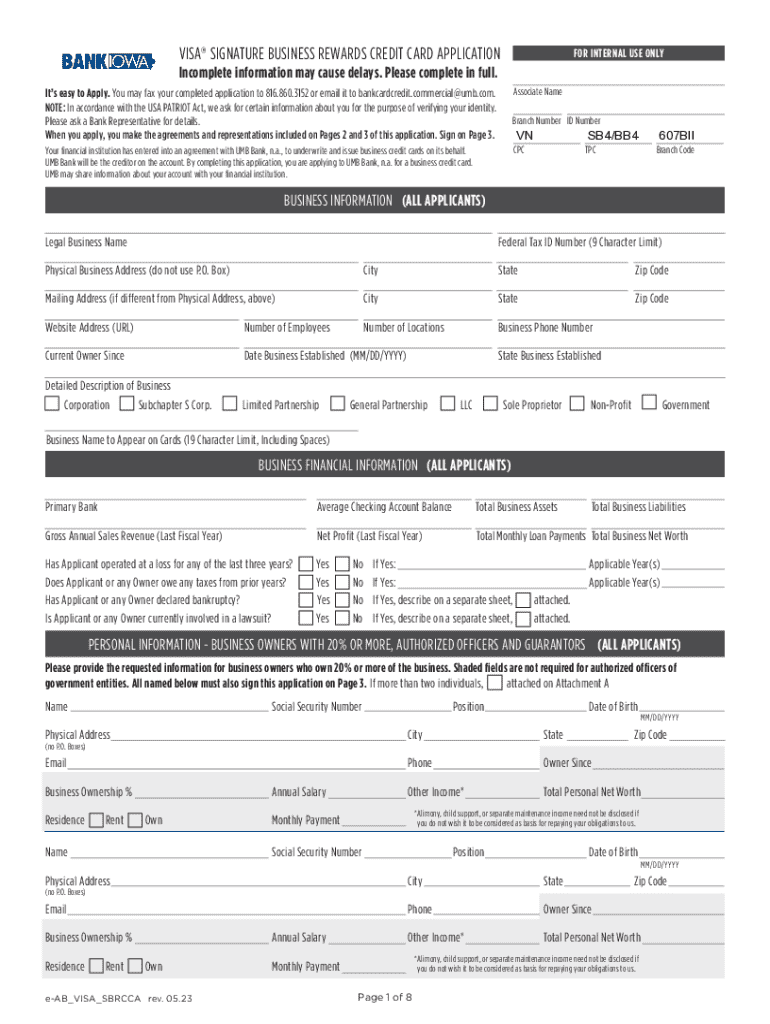 VISA SIGNATURE BUSINESS REWARDS CREDIT CARD APPLICATION
