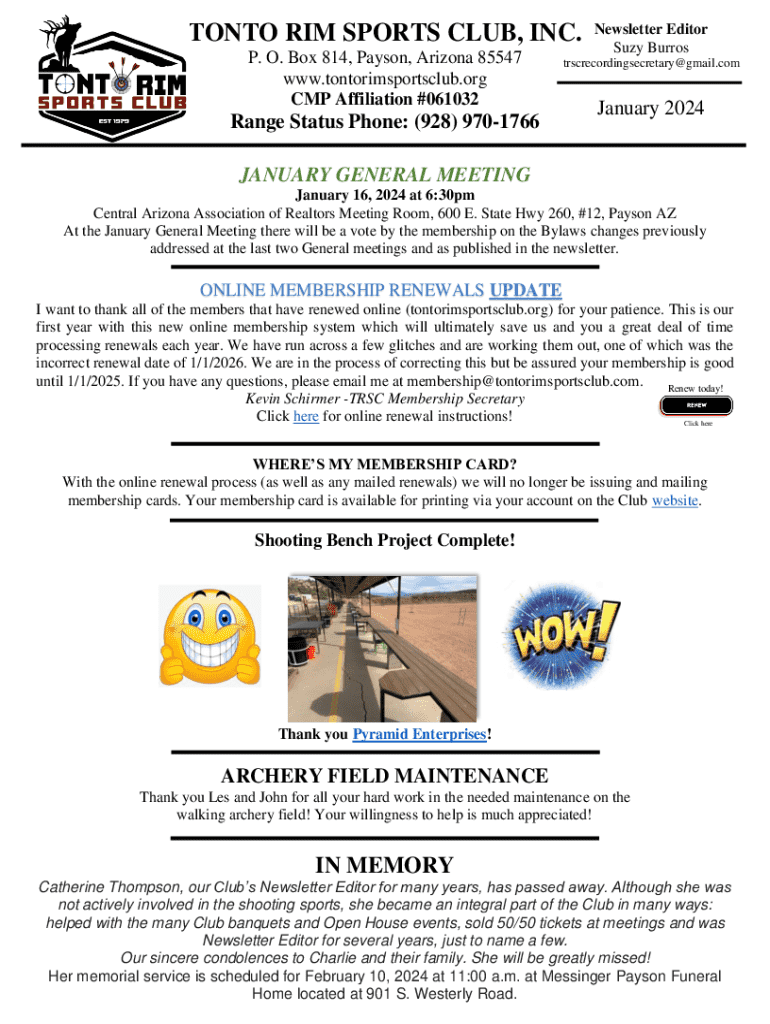 CMP Affiliation #061032Range Status Phone: (928) 9701766Newsletter Editor